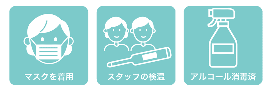 手洗い、うがい、アルコール液による手指の消毒を徹底しておりますので、どうぞご安心下さい!